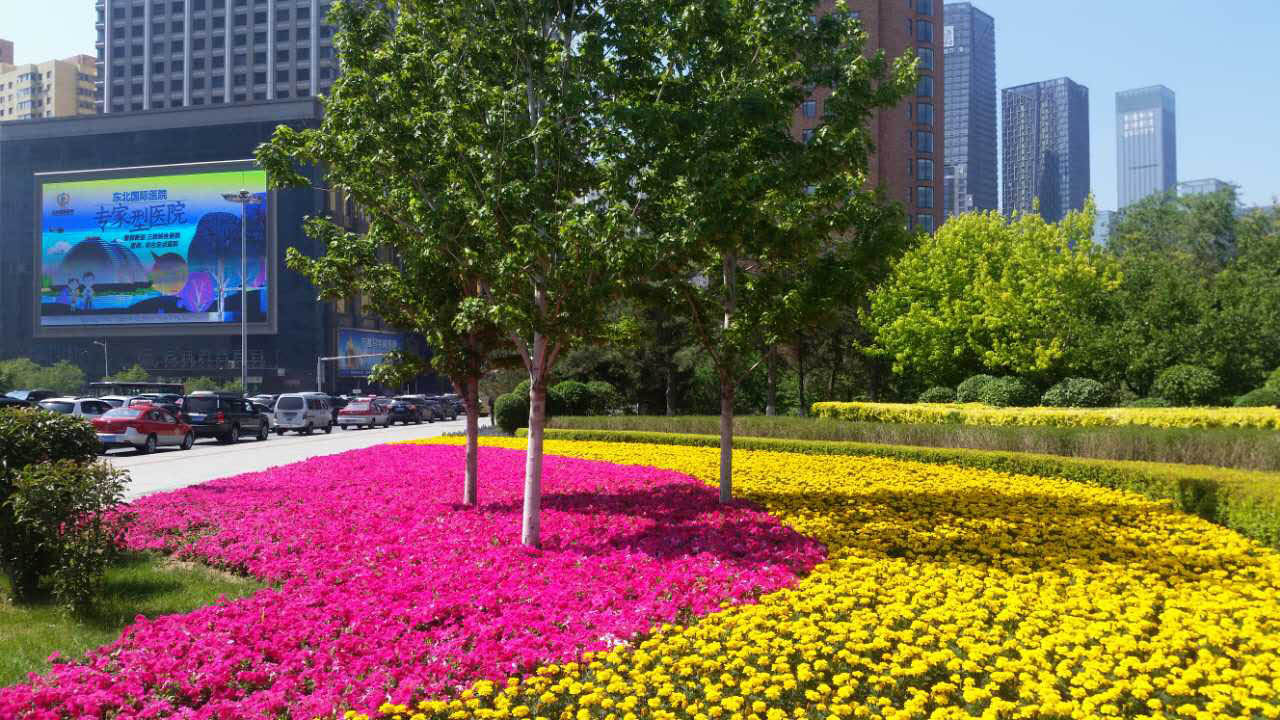 工程于2017年4月20日開始施工,于2017年10月30日結(jié)束,共栽植矮牽牛、金魚草、三色堇、非洲鳳仙等花卉18000余平方米。由于今年花卉選撥上要求比較高,尤其是秋季花卉栽擺更加嚴(yán)格,我們慎重選擇花卉,在進(jìn)入冬季后,為保證沿街花箱及重點(diǎn)綠地景觀效果,創(chuàng)新嘗試栽植羽衣甘藍(lán),對(duì)于裸露地面運(yùn)用彩色基質(zhì)進(jìn)行覆蓋,最終保質(zhì)保量完成施工任務(wù),該工程得到市領(lǐng)導(dǎo)、局領(lǐng)導(dǎo)及廣大市民的一致好評(píng)。